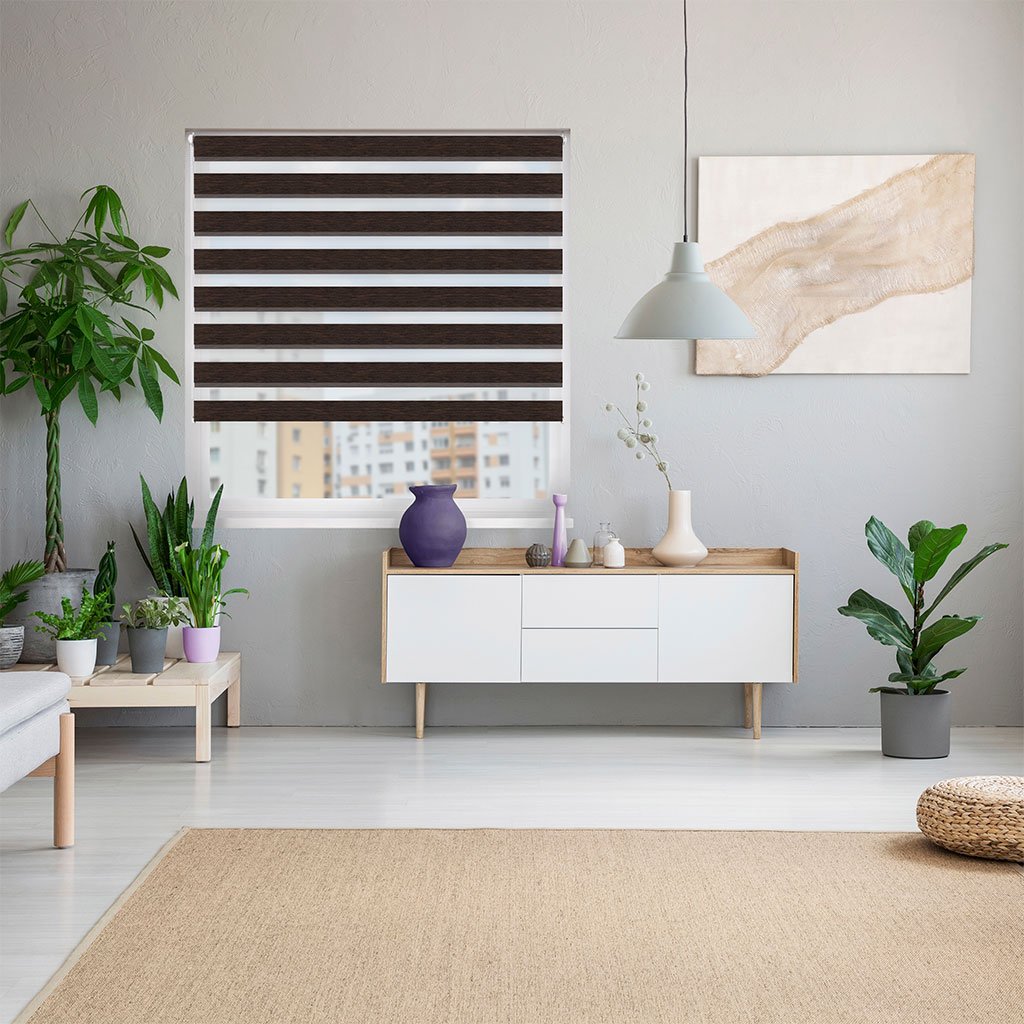 Látkové Rolety Den a noc fungují na principu střídání průhledných a neprůhledných vodorovných pruhů. Díky jejich vzájemnému překrývání můžete efektivně regulovat průchod slunečních paprsků. Rolety můžete také zatáhnout tak, aby fungovaly jako plné látkové rolety, nebo naopak zcela vytáhnout nahoru.