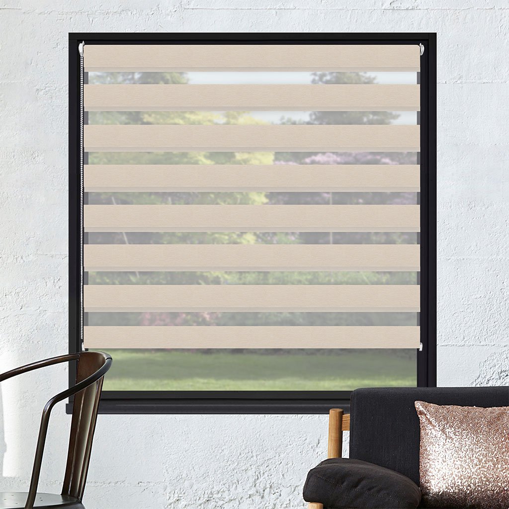 Látkové Rolety Den a noc fungují na principu střídání průhledných a neprůhledných vodorovných pruhů. Díky jejich vzájemnému překrývání můžete efektivně regulovat průchod slunečních paprsků. Rolety můžete také zatáhnout tak, aby fungovaly jako plné látkové rolety, nebo naopak zcela vytáhnout nahoru.