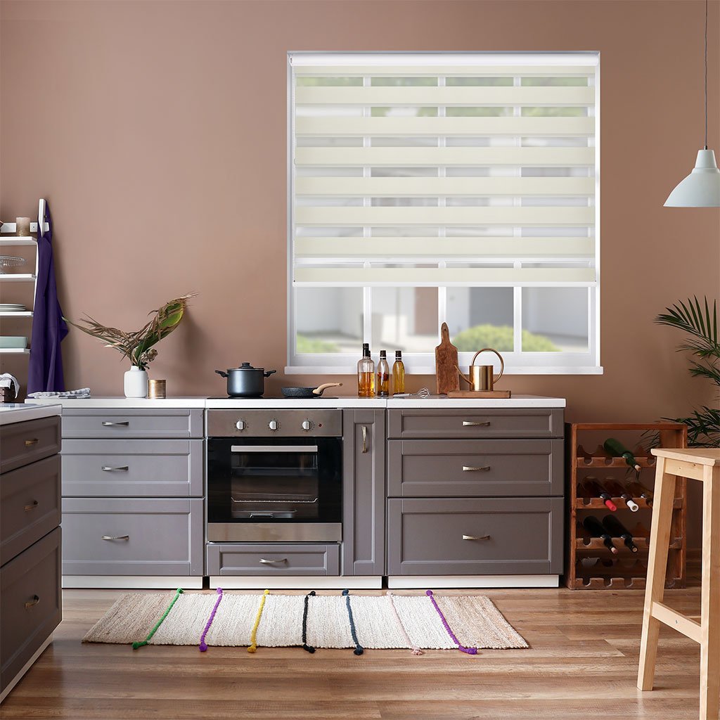 Látkové Rolety Den a noc fungují na principu střídání průhledných a neprůhledných vodorovných pruhů. Díky jejich vzájemnému překrývání můžete efektivně regulovat průchod slunečních paprsků. Rolety můžete také zatáhnout tak, aby fungovaly jako plné látkové rolety nebo naopak zcela vytáhnout nahoru.