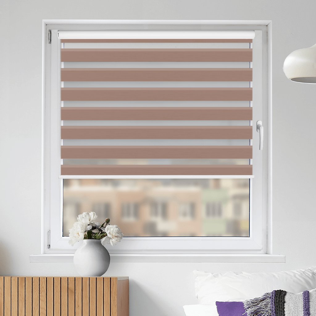 Látkové Rolety Den a noc fungují na principu střídání průhledných a neprůhledných vodorovných pruhů. Díky jejich vzájemnému překrývání můžete efektivně regulovat průchod slunečních paprsků. Rolety můžete také zatáhnout tak, aby fungovaly jako plné látkové rolety nebo naopak zcela vytáhnout nahoru.