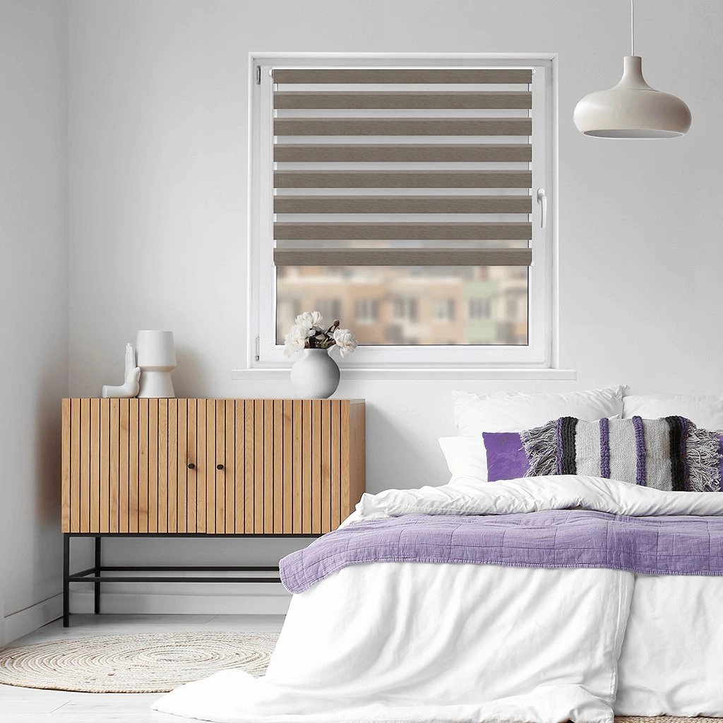 Látkové Rolety Den a noc fungují na principu střídání průhledných a neprůhledných vodorovných pruhů. Díky jejich vzájemnému překrývání můžete efektivně regulovat průchod slunečních paprsků. Rolety můžete také zatáhnout tak, aby fungovaly jako plné látkové rolety nebo naopak zcela vytáhnout nahoru.