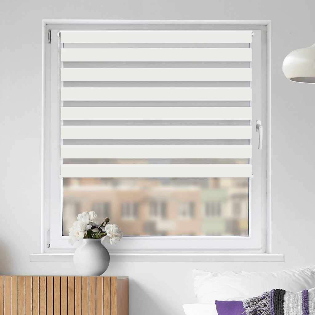 Rolety Den a noc pro Vás vyrobíme na míru. Roleta je již složená a sešroubovaná a dodáme ji včetně montážní sady a řetízku. Pro rolety připevněné přímo na okenním rámu dostanete i napínací silon, díky kterému rolety kopírují nakloněné okno i po otevření na ventilaci.