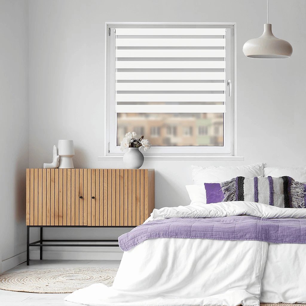 Látkové Rolety Den a noc fungují na principu střídání průhledných a neprůhledných vodorovných pruhů. Díky jejich vzájemnému překrývání můžete efektivně regulovat průchod slunečních paprsků. Rolety můžete také zatáhnout tak, aby fungovaly jako plné látkové rolety nebo naopak zcela vytáhnout nahoru.