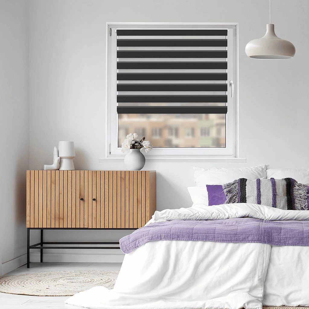 Látkové Rolety Den a noc fungují na principu střídání průhledných a neprůhledných vodorovných pruhů. Díky jejich vzájemnému překrývání můžete efektivně regulovat průchod slunečních paprsků. Rolety můžete také zatáhnout tak, aby fungovaly jako plné látkové rolety nebo naopak zcela vytáhnout nahoru.