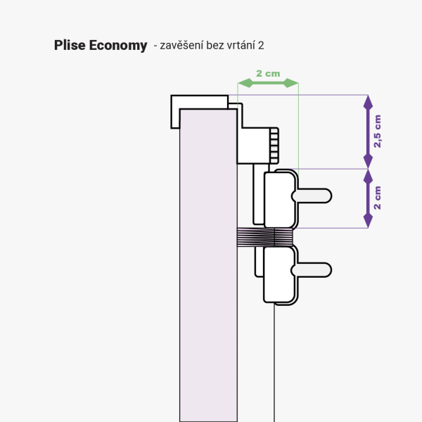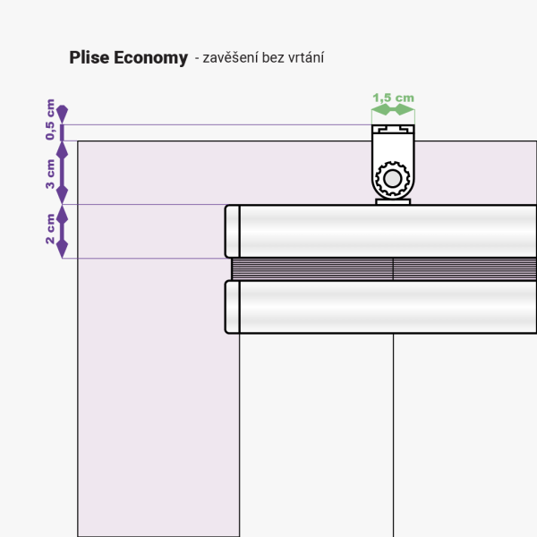 - Produktová řada Plisé Economy nabízí pouze neinvazivní zavěšení bez vrtání